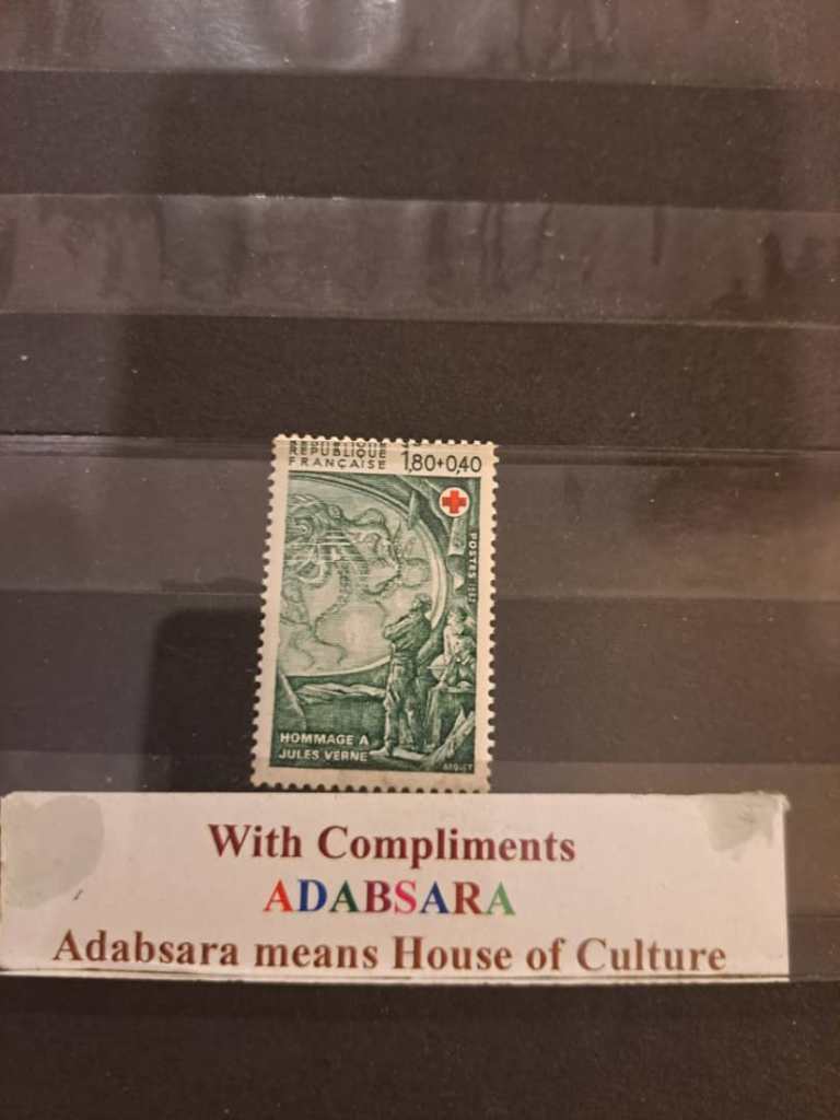 تمبر مینت فرانسه با ارزش اسمی 1 فرانک و 10 سانتیم + 40 سانتیم برنگ سبز خاکستری با تصویرطرحی خیالی از منظره ای از 20 هزار فرسنگ زیر دریا اثر ژول ورن سال 1982