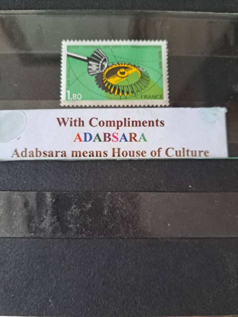 تمبر پستی فرانسه با ارزش اسمی یک فرانک و 80 سانتیم فرانسه با تصویری از چرخ دنده و با معرفی مدرسه مرکزی فنی پاریس. میشل # 2182. اسکات # 2179.