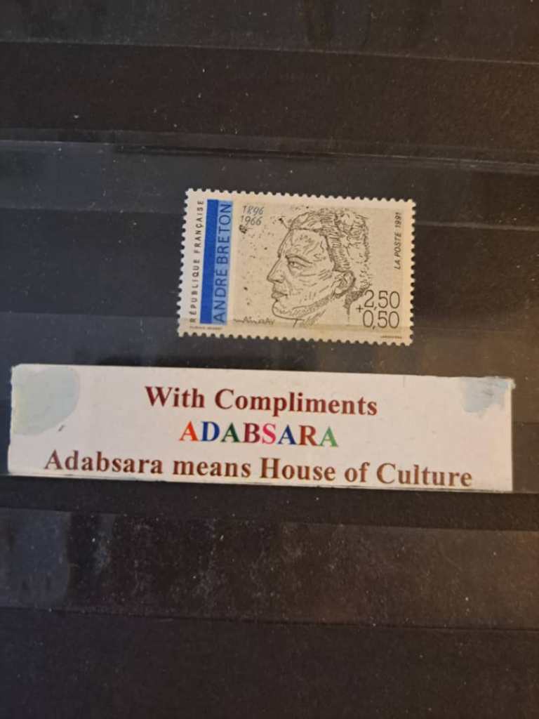 تمبر پستی 2 فرانک و 30 سانتیم + 50 سانتیم فرانسه منتشره در سال 1991 در بزرگداشت هنرمند فرانسه آندره برتون. اسکات# 629 ب