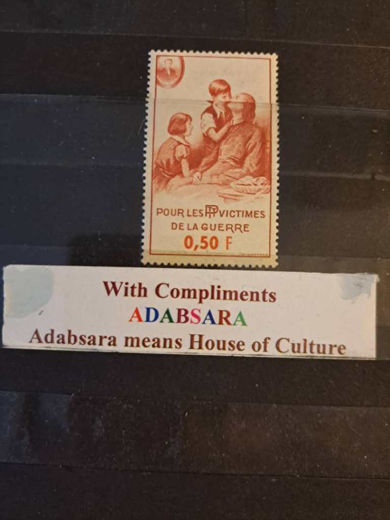 پوستر تمبر پستی 50 سانتیم فرانسه منتشره برنگ قرمز قهوه ای با عنوان فرانسه در جنگ بزرگ منتشره وسیله اداره پست فرانسه بیاد قربانیان جنگ