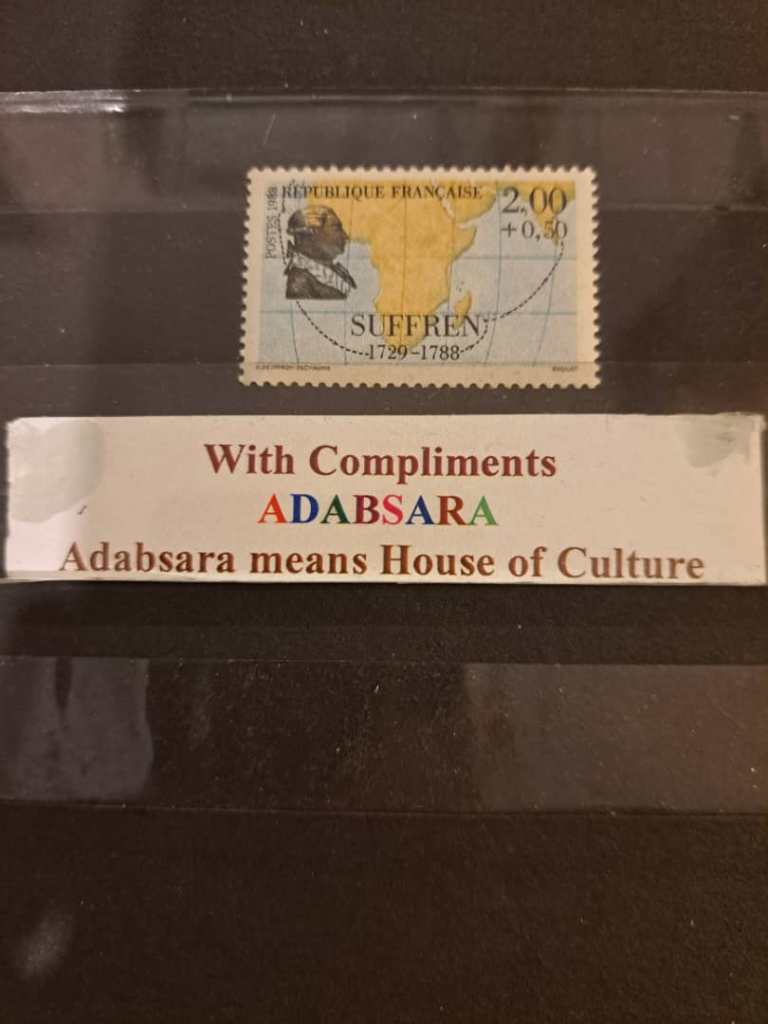 تمبر پستی 2 فرانک + 50 سانتیم فرانسه منتشره با عنوان مکتفشین فرانسه با تصویر سوفرن و نقشه اکتشافات او # 594 ب