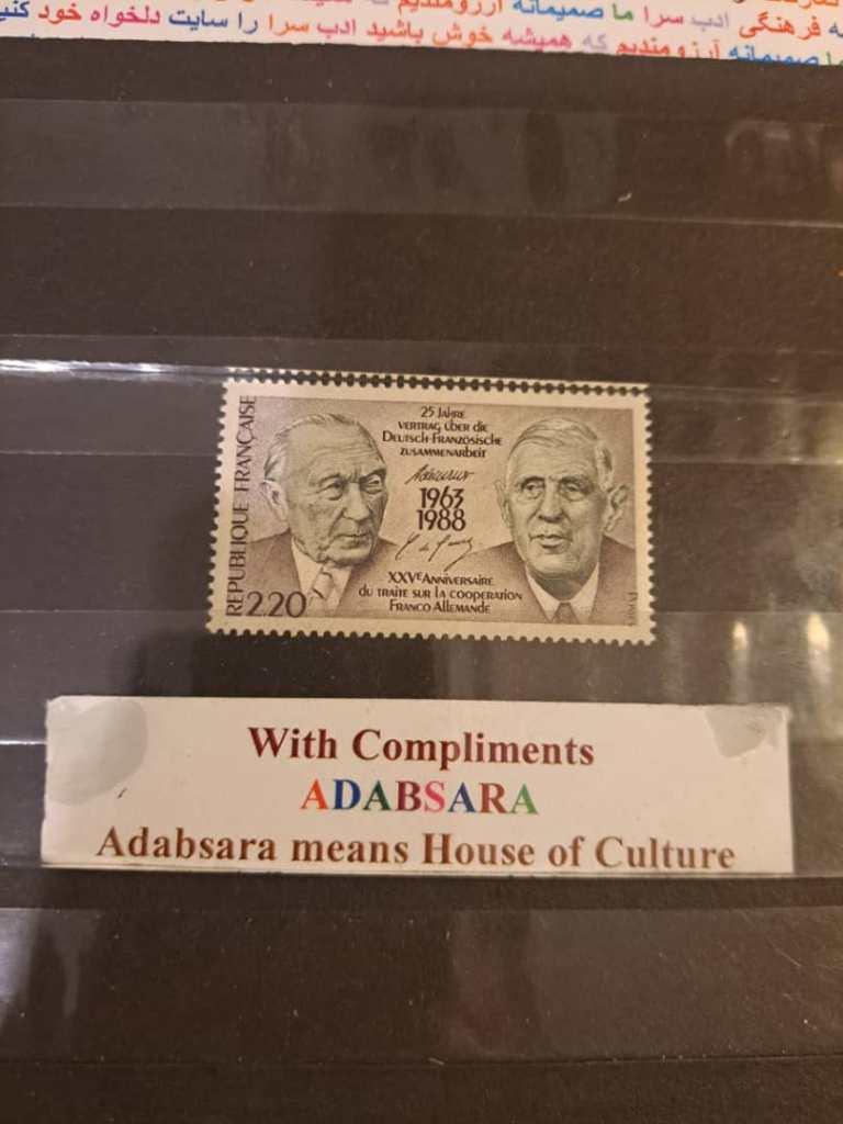 تمبر 3 فرانک و 20 سانتیم فرانسه در سال 1988 بمناسبت بیست و پنجمین سال همکاری های فرانسه و آلمان. اسکات # 1546