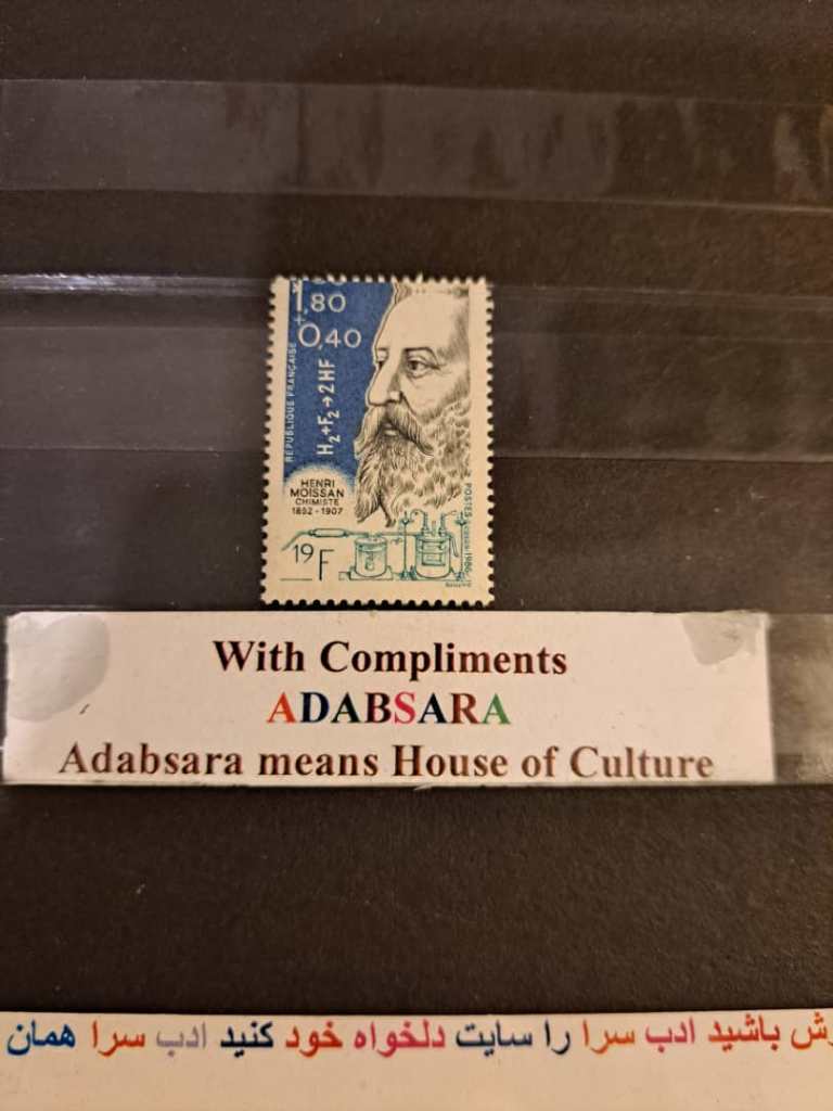 تمبر 1 فرانک و 80 سانتیم + 40 سانتیم فرانسه در سال 1986 با تصویر هانری موئیسان شیمی دان فرانسه