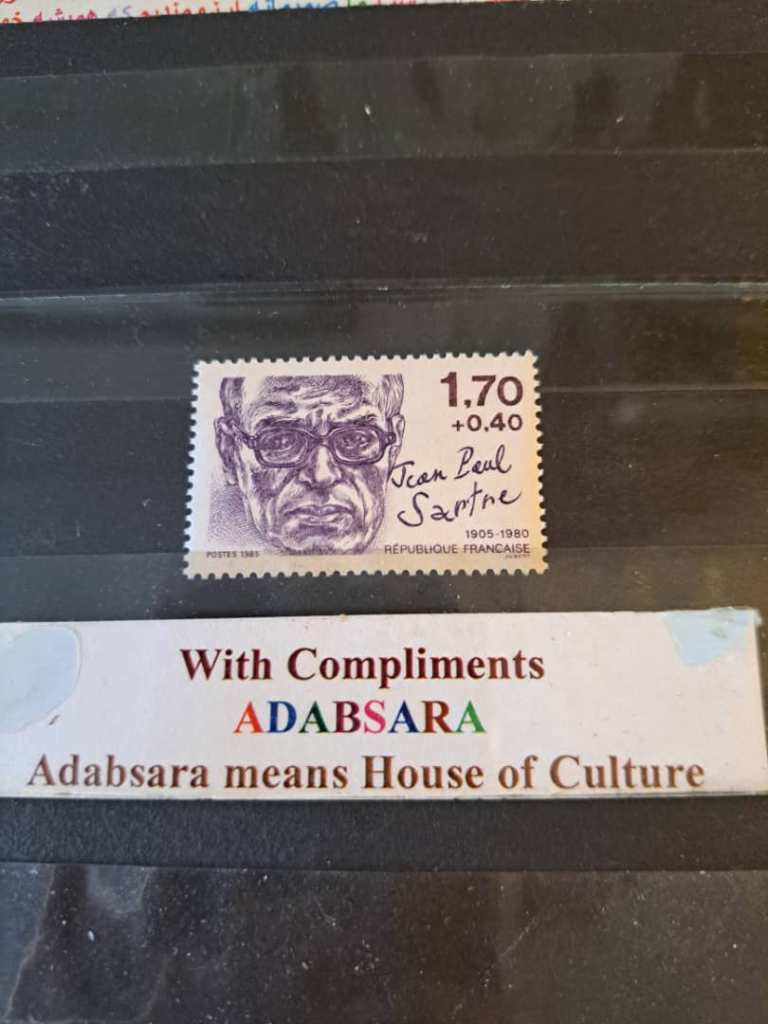 تمبر 1 فرانک و 70 سانتیم + 40 سانتیم فرانسه در سال 1985 فرانسه. با تصویر ژان پل سارتر