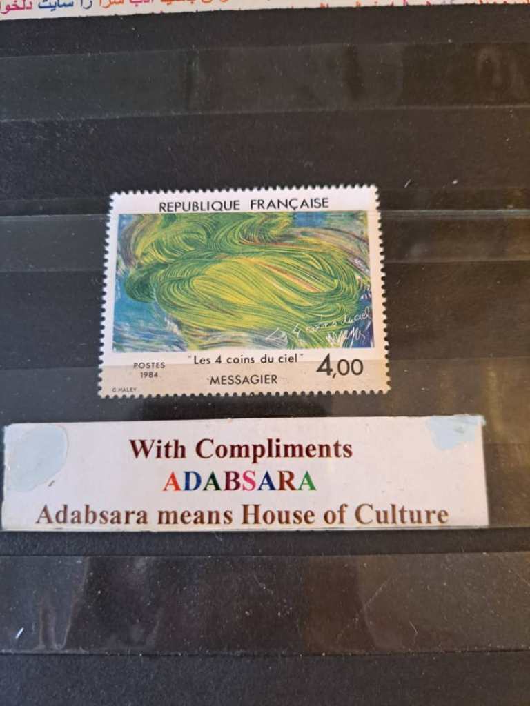تمبر فرانسه با ارزش اسمی 4 فرانک در سال 1984با تصویر یک نقاشی اثر ژان مساژیر با نام جهار گوشه دنیا. شماره اسکات: 1909