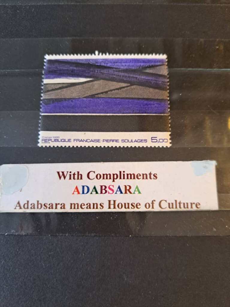 تمبر فرانسه مینت بدون شارنیه و کوچکترین تاخوردگی با چسب اصل (برابر تصویر) با ارزش اسمی 5 فرانک در سال 1986با تصویر یک نقاشی آبستره اثر نقاش اهل فرانسه پی یر سولاژ