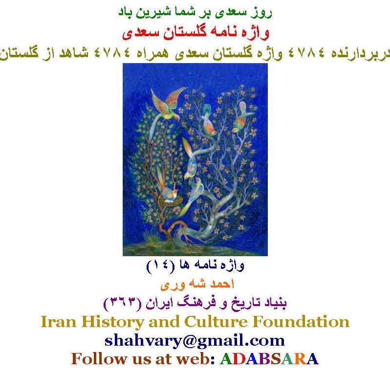 احمد شه وری. فرهنگ4784 واژه اصلی گلستان سعدی. . 815 صفحه. 2020/1399