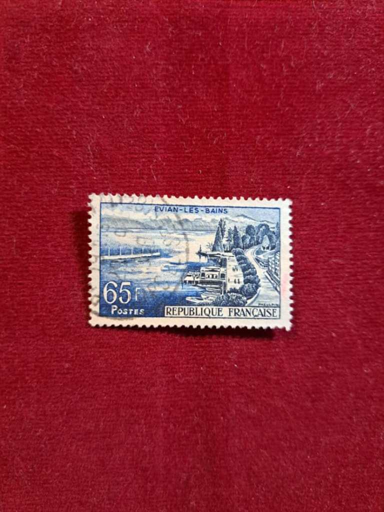 تمبر 65 فرانک آبی رنگ فرانسه. 1957. # 1131. Evian-les Bains
