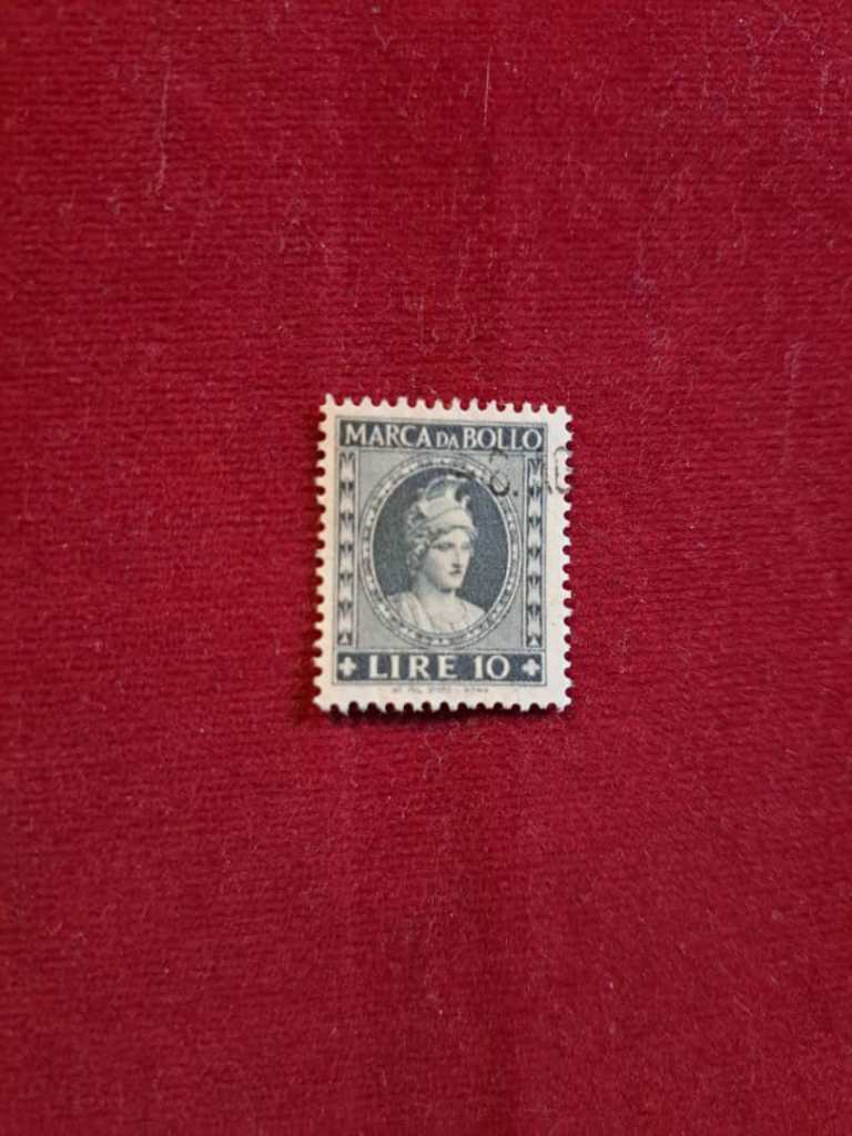 تمبر 10 لیر مالی خاکستری ایتالیا. سال 1947.