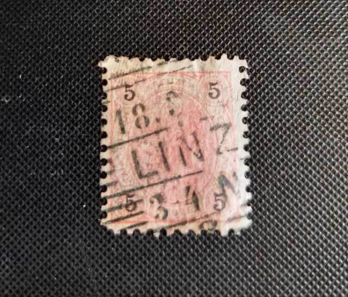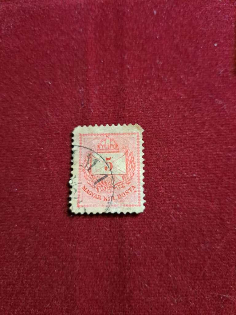 تمبر 5 فیلر صورتی مجارستان (1880) با تصویر تاج سنت استیفن . شپپور پست. اسکات # 20
