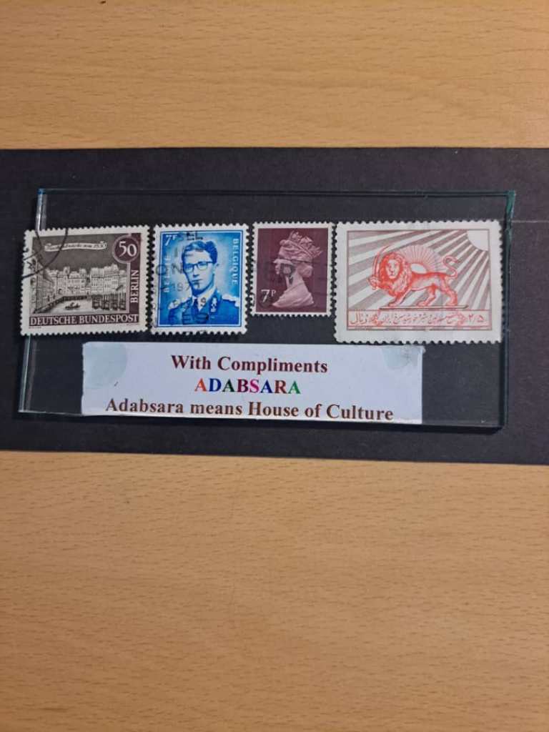 Four different and valuable stamps from different countries of the world, Iran, Britain, France, Germany, and …