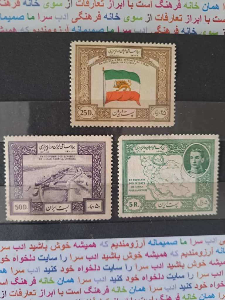 شرح کالا: تمبر پستی یادگاری مساعی ایران در جنگ جهانی دوم